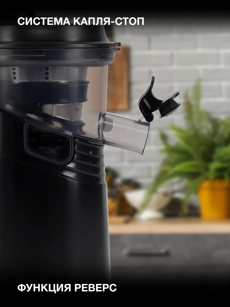 Соковыжималка Hyundai HY-JS2323 черный, шнековая, мощность 120Вт, резервуар для сока 400мл.
