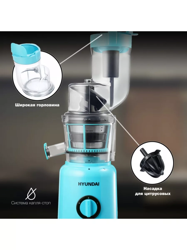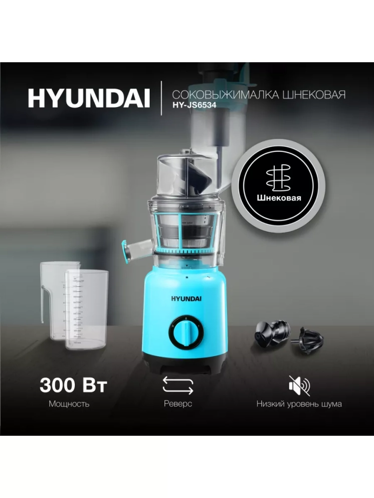 Соковыжималка Hyundai HY-JS6534 светло-синий, шнековая, мощность 300Вт, резервуар для сока 600мл