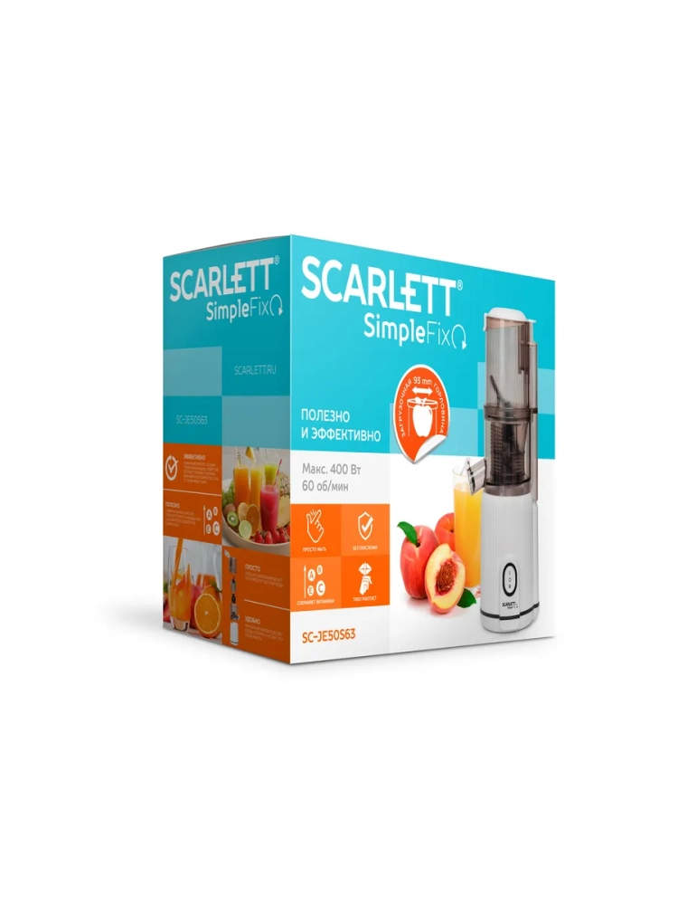 Scarlett SC-JE50S63 – шнековая соковыжималка для приготовления натурального сока из овощей и фруктов.