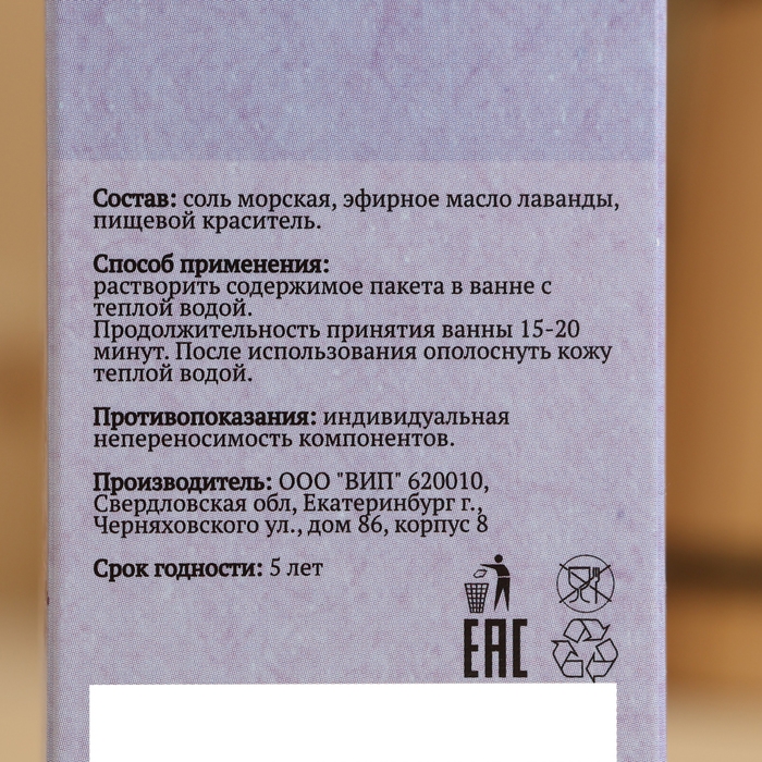 Соль для бани и ванны с эфирным маслом лаванды 150 г Добропаровъ