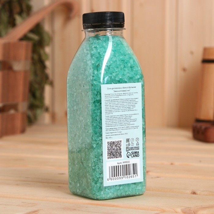 Соль для ванны и бани в бутылке "Эвкалиптовый лес" 600 г