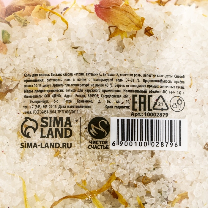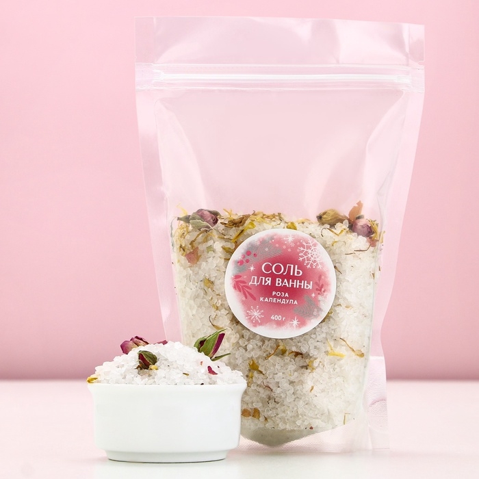 Соль для ванны с лепестками розы и календулы, 400 г, Новый Год