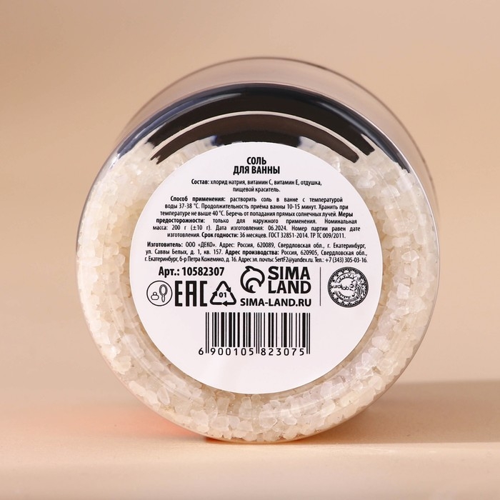 Соль для ванны ЧИСТОЕ СЧАСТЬЕ Love, 150 г, аромат сочного кокоса