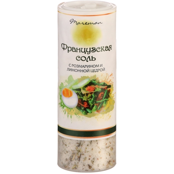 "Французская соль" мелкого помола Mareman создана для ваших любимых блюд. Ароматная приправа содержит специи: розмарин, базилик, сельдерей, а также лимонную цедру. Также соль содержит пользу морской поваренной пищевой соли.