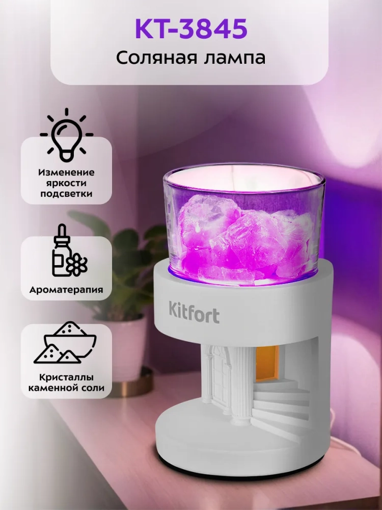 Соляная лампа-ароматизатор Kitfort KT-3845 — это светильник, основой которого являются кристаллы каменной соли.