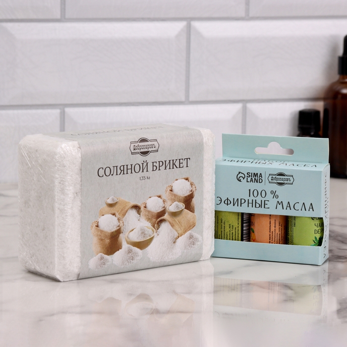 Соляной брикет 1,35 кг и набор эфирного масла 3шт по 15 мл "Апельсин, Сосна, Чайное дерево"