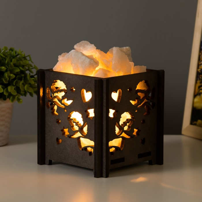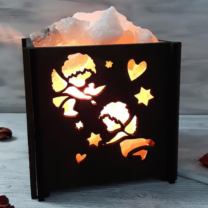 Светильник «Ангелы» — это эстетическая часть интерьера и осветительный прибор одновременно. Лампа из соли является дополнительным источником света и даёт мягкое успокаивающее свечение. Идеально подходит в качестве ночника.