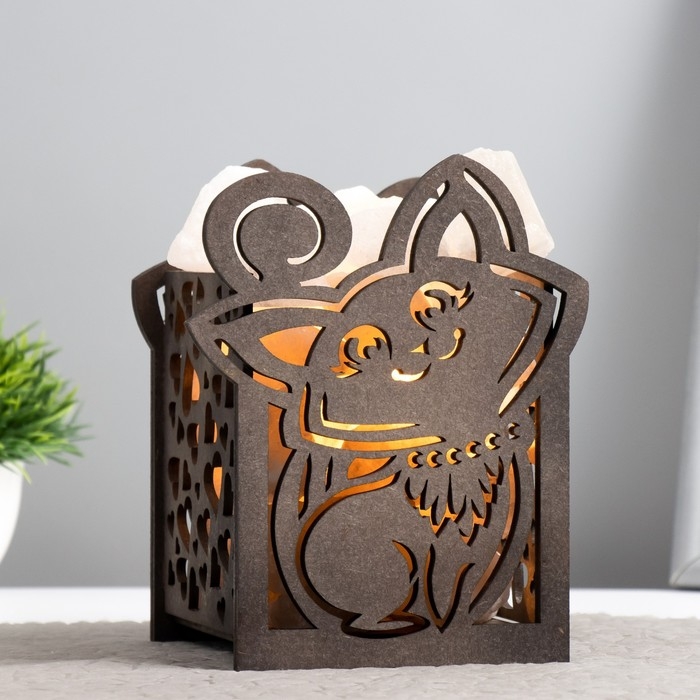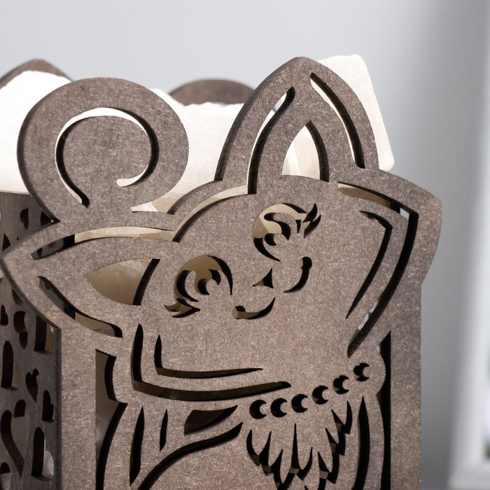 Соляной светильник "КОШЕЧКА" деревянная Е14 15Вт 1,4 кг