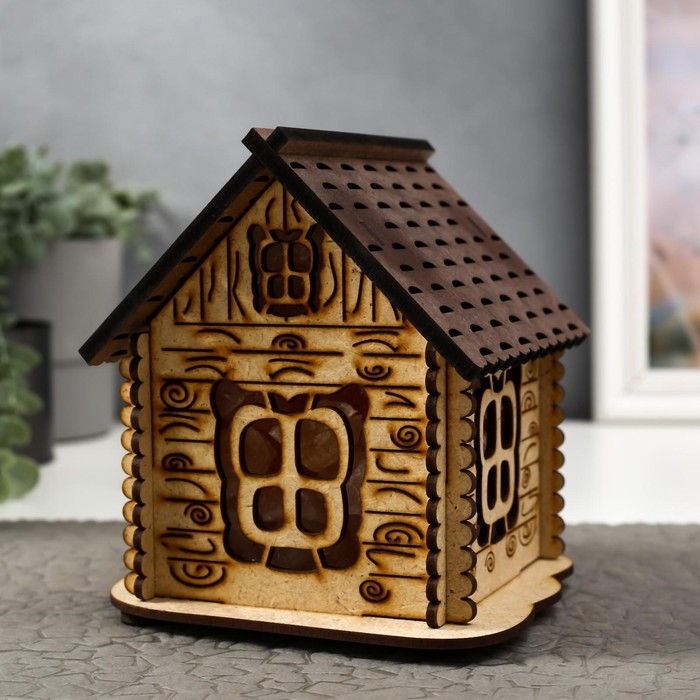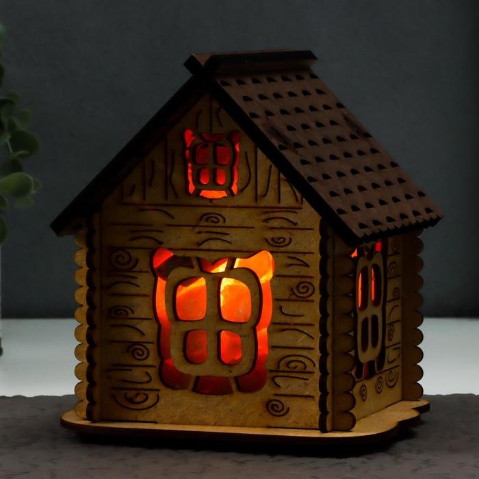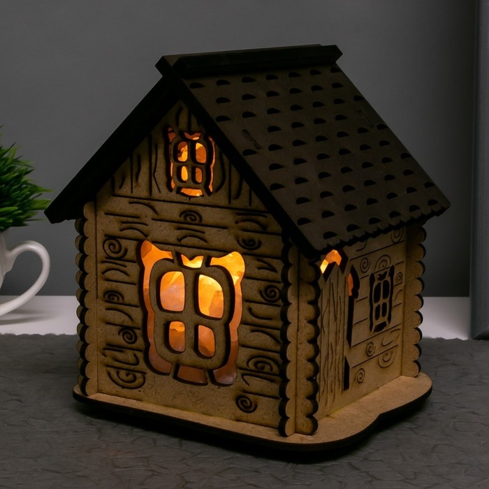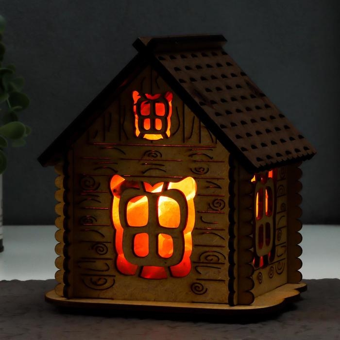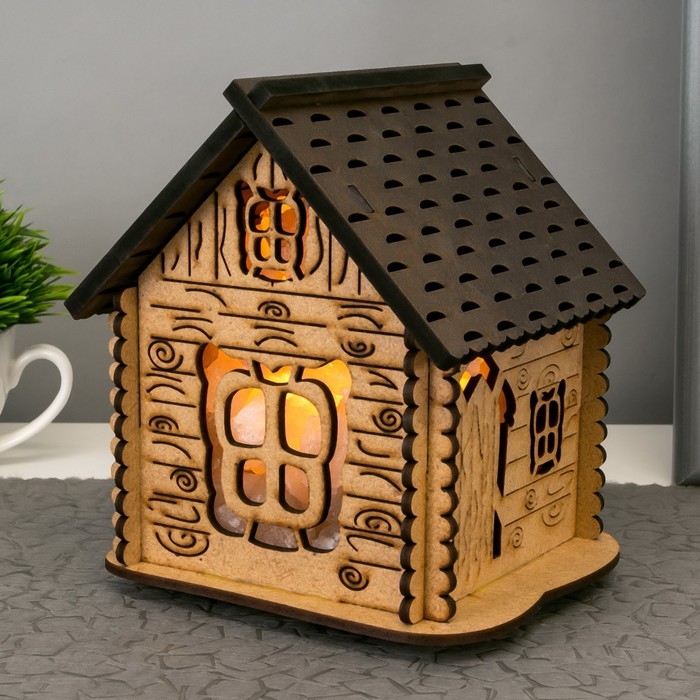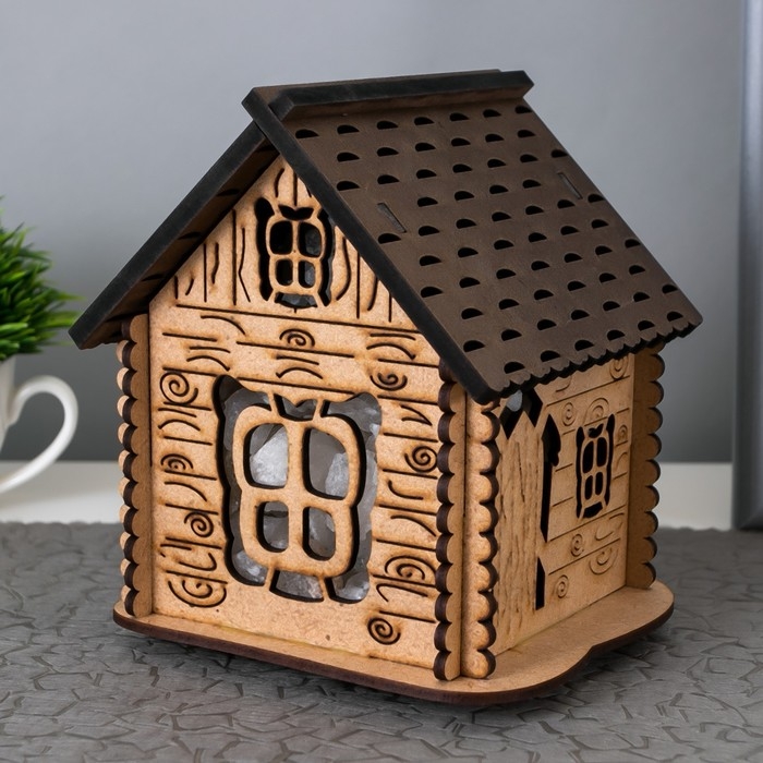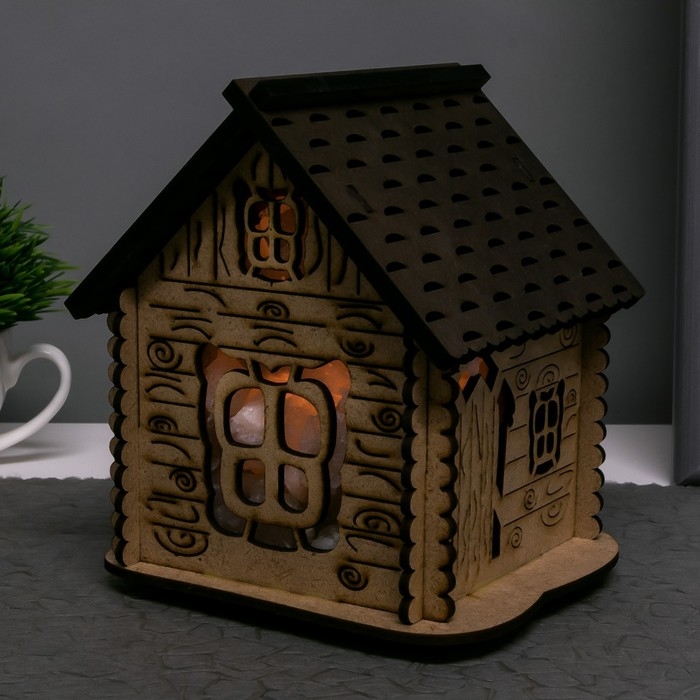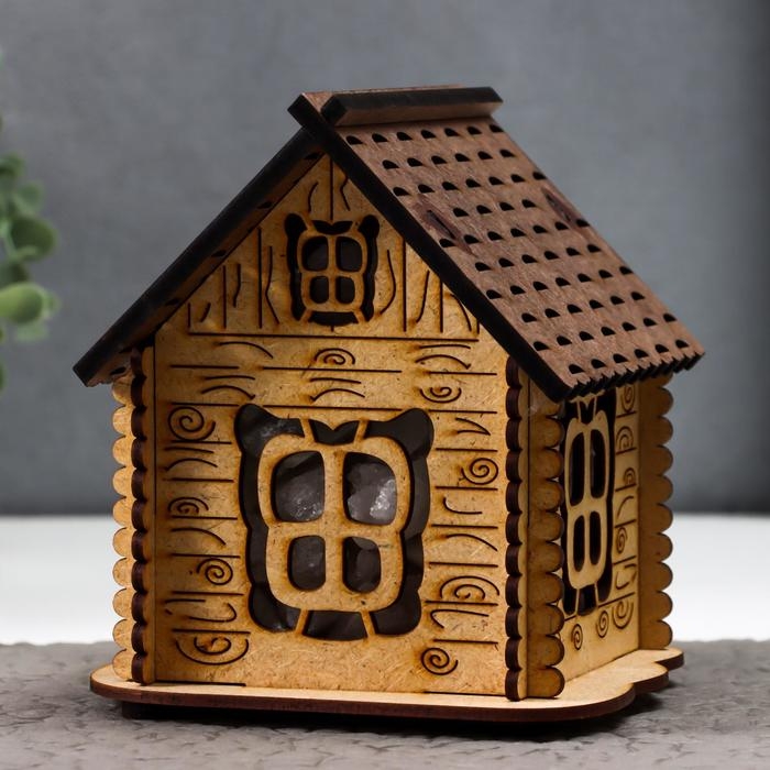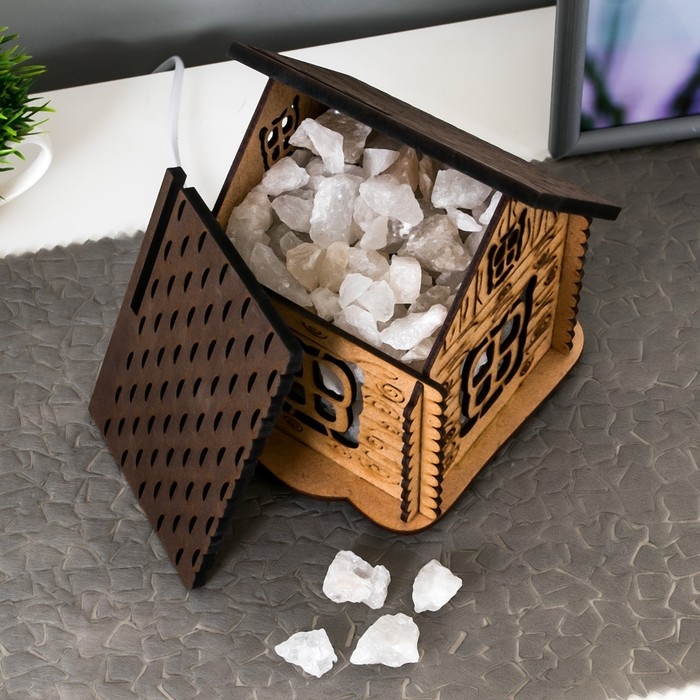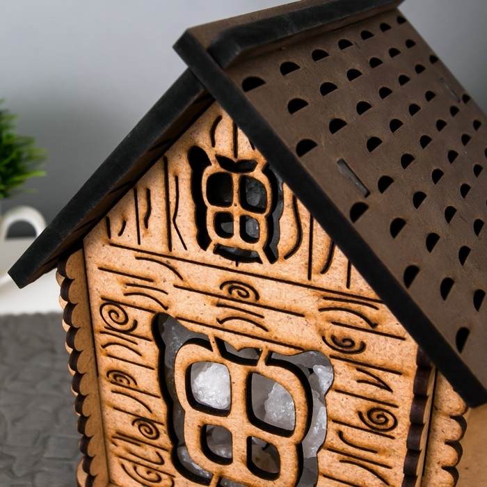 Соляной светильник с диммером "Домик" деревянный, 1х15Вт Е14, 1-1,3 кг, 16х16х16см