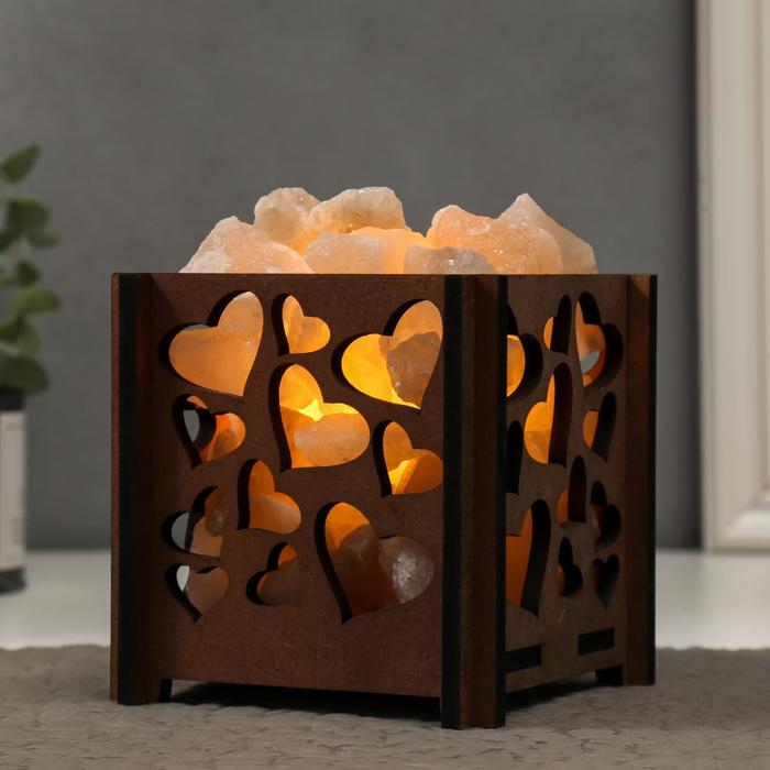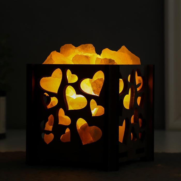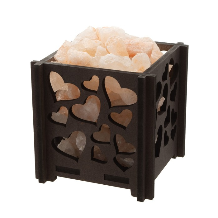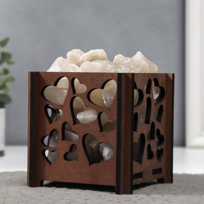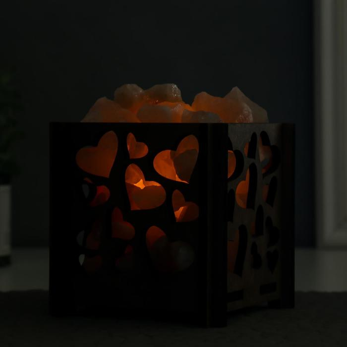 Соляной светильник с диммером "Корзина. Сердца" 1,8кг, 15Вт, 15х12х12 см