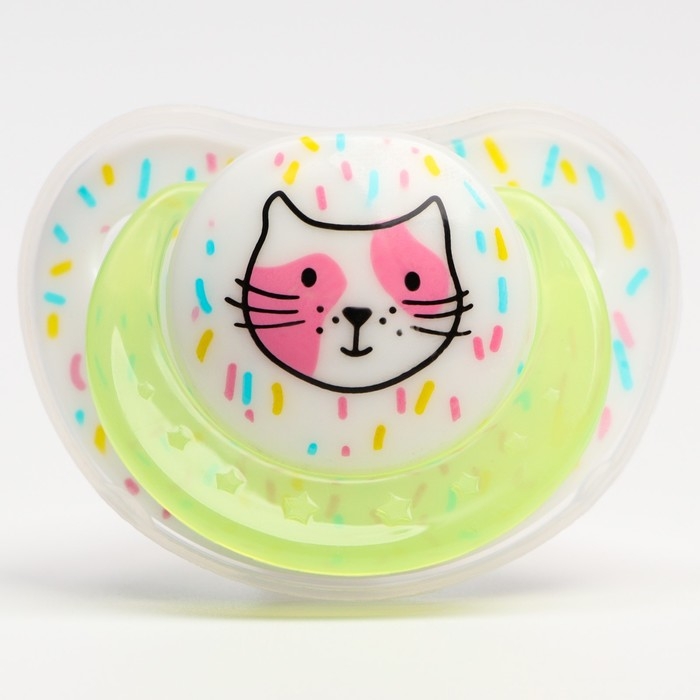 Соска - пустышка силиконовая ортодонтическая «Кошечка», от 0 мес., с колпачком, цвет желтый