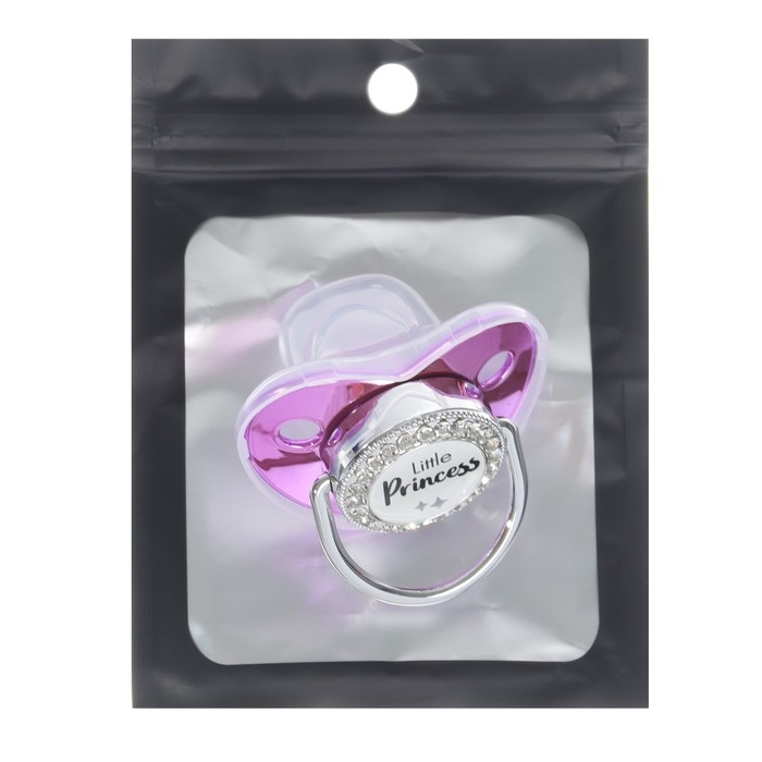 Соска - пустышка силиконовая ортодонтическая «LITTLE PRINCESS», от 12 мес., с колпачком, цвет розовый/серебро, стразы