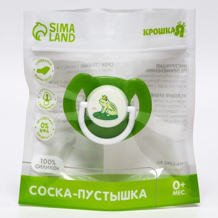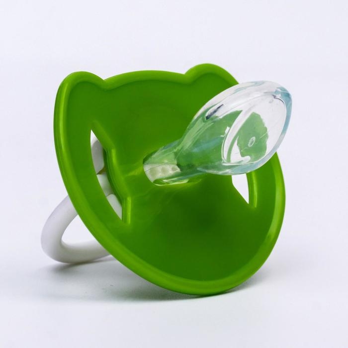 Соска - пустышка силиконовая ортодонтическая «Лягушка», от 6 мес., с колпачком, цвет зеленый