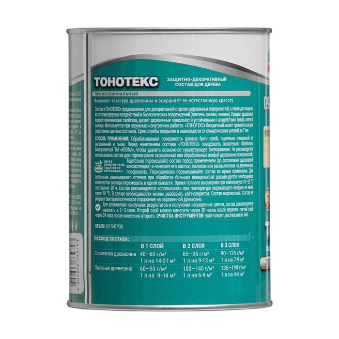 Защитно-декоративный состав для дерева KRONA Тонотекс- это алкидный состав, предназначенный для тонирования и защиты деревянных поверхностей снаружи и внутри