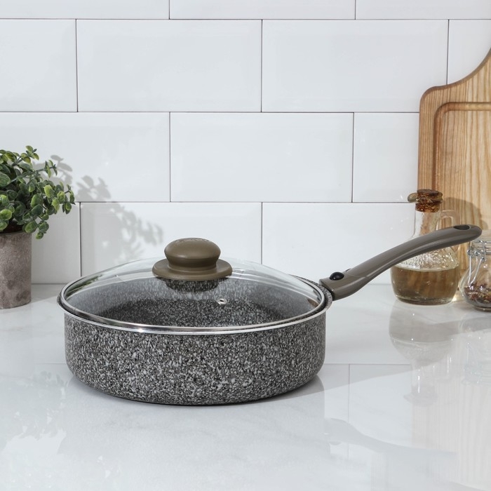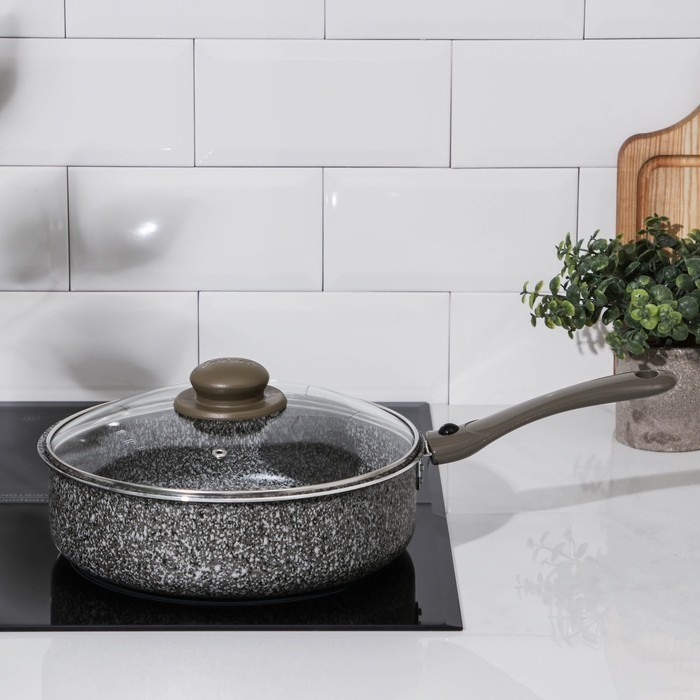 Сотейник Onyx, d=24 см, стеклянная крышка, съёмная ручка, антипригарное покрытие, цвет серый