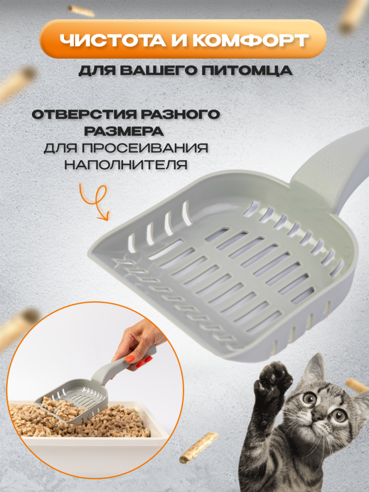 Совок для уборки кошачьего туалета, бежевый