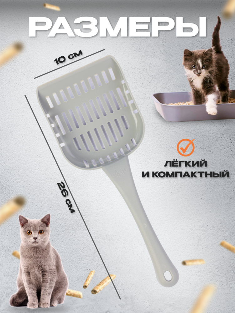 Представляем вашему вниманию серый совок для кошачьего туалета — идеальный помощник в уходе за вашим пушистым другом! С размерами 26 см в длину, 10 см в ширину и 4 см в высоту, этот совок отлично подходит для всех типов наполнителей, обеспечивая максимальное удобство в использовании.