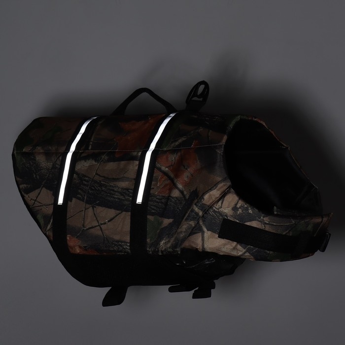 Жилет выполнен из качественных материалов: нейлон и пенополиэтилен, обеспечивает прочность и надежность жилета, крепеж из крепкого пластика не подвергается коррозии, что позволяет надежно зафиксировать жилет на собаке. Плавательный жилет снабжен удобной ручкой для переноски животного, а светоотражающие полосы обеспечат максимальную видимость на воде в любых условиях.
