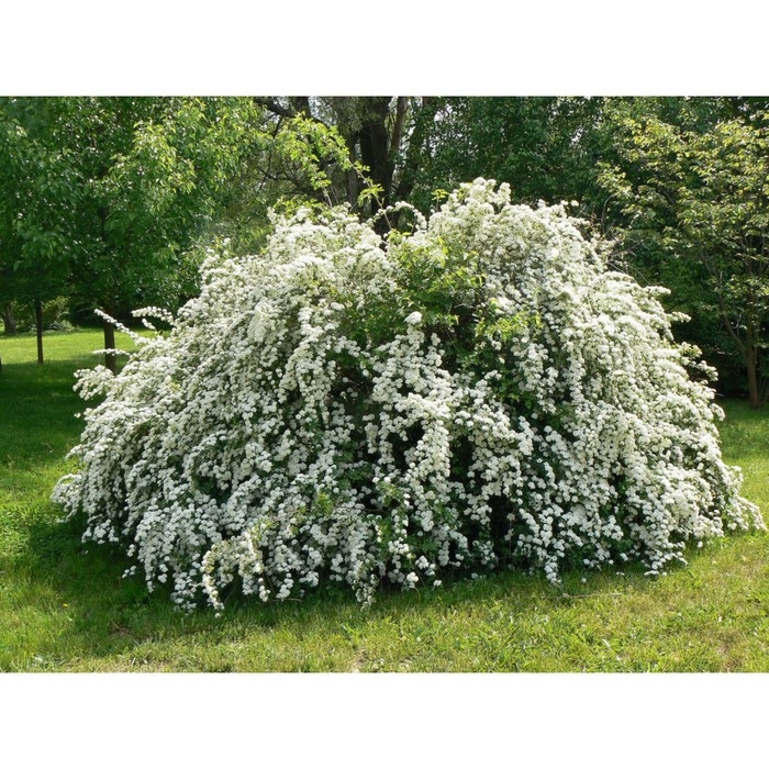 Раскидистый, широкий, сильно-растущий кустарник. Высота и диаметр кроны достигает 2 метров. Листья темно-зеленые. Цветки белые в густых соцветиях, полностью покрывают прошлогодние побеги. Красиво и обильно цветет.