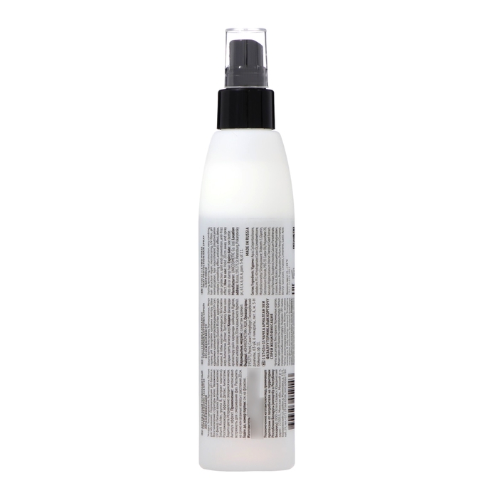 - Двухфазный спрей 15 в 1 питает, увлажняет, разглаживает волосы без склеивания и утяжеления.
