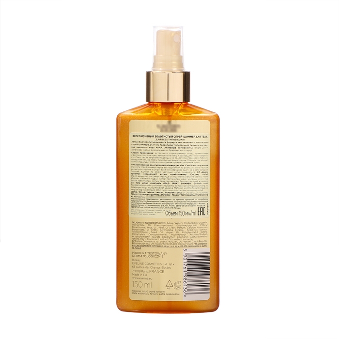 Спрей-шиммер после загара для тела Eveline Brazilian Body, золотистый 5в1, 150 мл