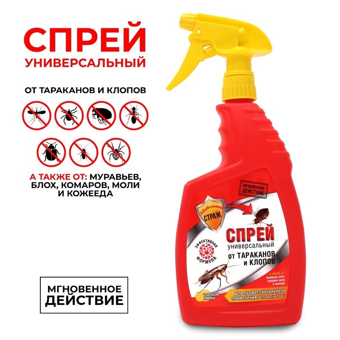 Спрей универсальный от клопов и блох "Бдительный страж", с запахом лимона, 750 мл