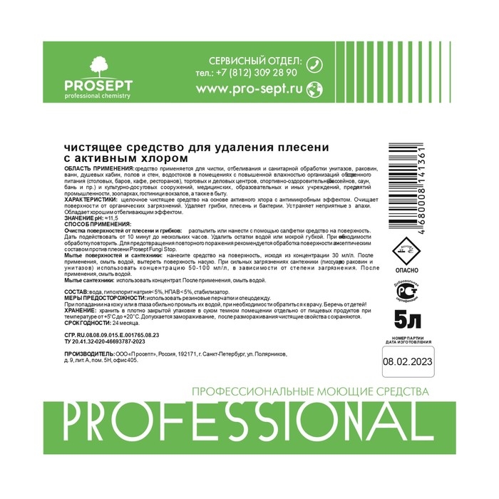 Средство для удаления плесени от Prosept – готовое к использованию средство на основе активного хлора для удаления очагов биопоражений. Используется для ликвидации грибковых поражений и органических загрязнений с керамических, пластиковых, деревянных поверхностей.