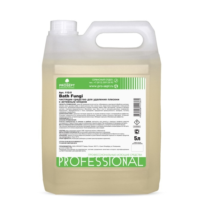 Средство для удаления плесени PROSEPT, с дезинфицирующим эффектом, Bath Fungy, концентрат, 5 л