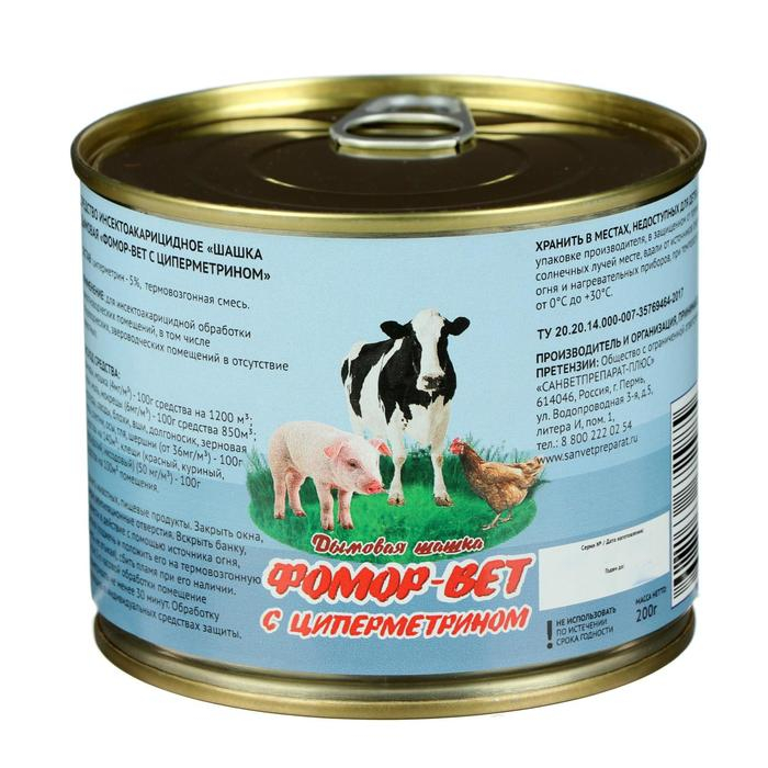 Средство инсектоакарицидное, дымовая шашка с циперметрином "Фомор-Вет", 200 гр