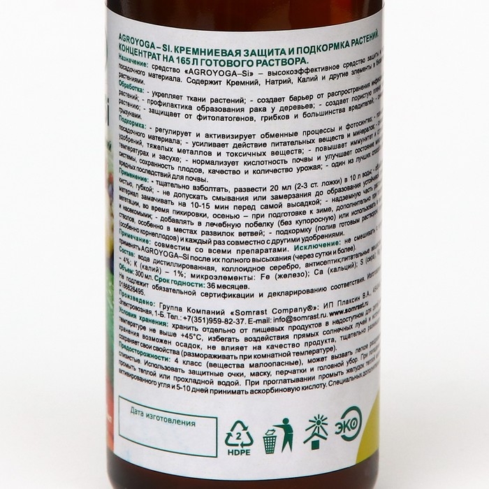 Средство «AGROYOGA–Si» – высокоэффективное средство защиты и подкормки всех видов растений и посадочного материала. Содержит кремний, натрий, калий и другие элементы в биоактивной форме – легко усваивается растениями.