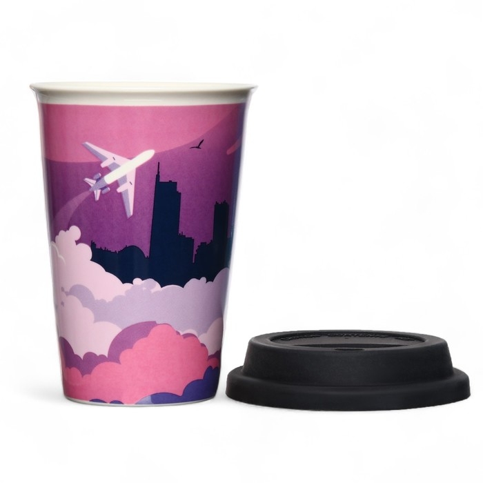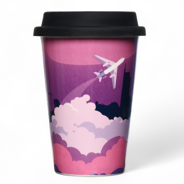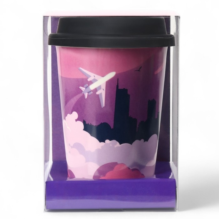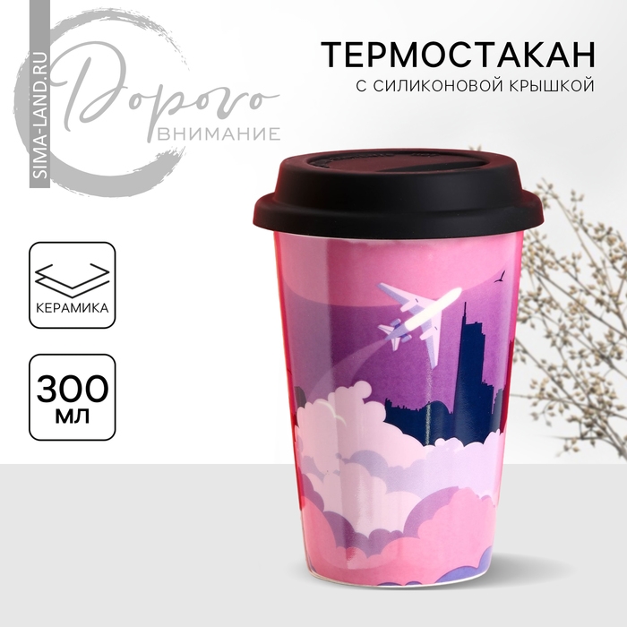 Стакан керамический с силиконовой крышкой «Самолёт», 300 мл, цвет розовый