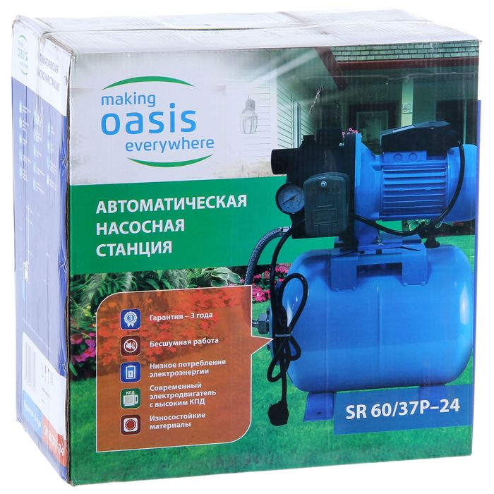 Станция насосная Оasis SR 60/37P - 24, автоматическая, max напор 37 м, 60 л/мин, 600 Вт