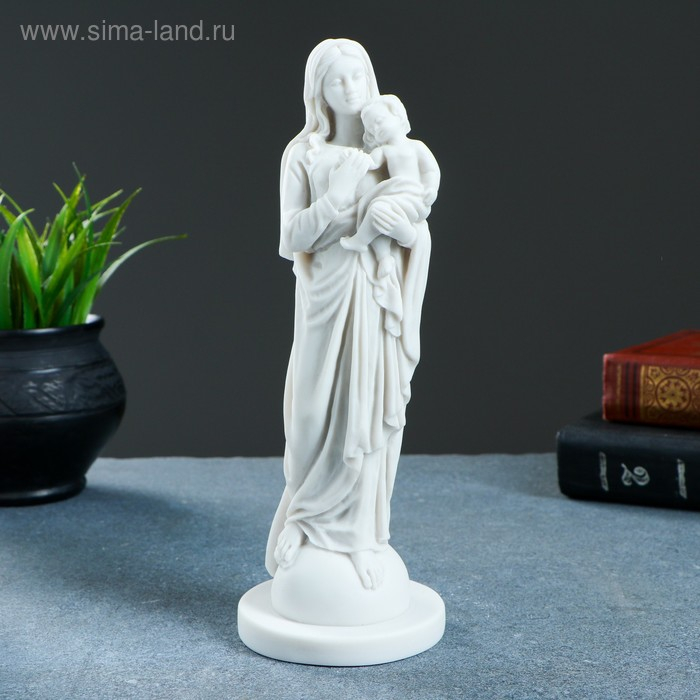 Статуэтка "Дева Мария с младенцем" 22х8см, белая / мраморная крошка