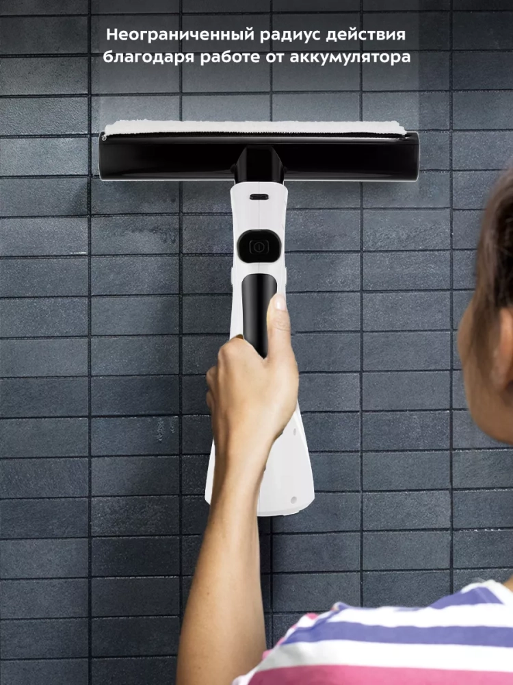 Благодаря работе от аккумулятора устройство имеет неограниченный радиус действия. Небольшие габариты и малый вес стеклоочистителя делают процесс уборки простым и удобным.