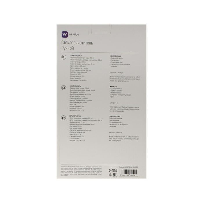 Стеклоочиститель для окон ручной Windigo LUC-2210, 12Вт, акб 1300мА/ч, 250 мл