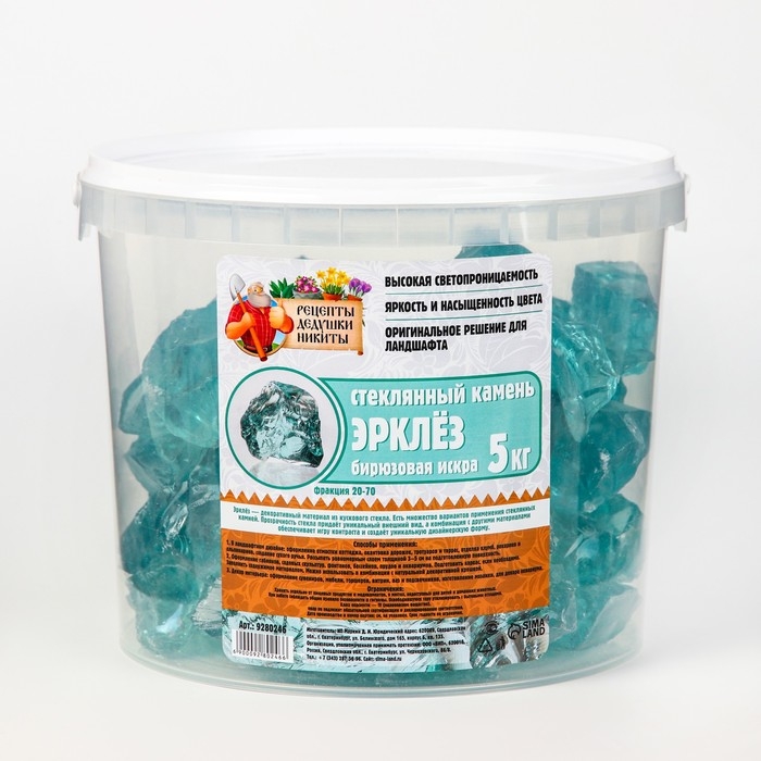 Стеклянный камень (эрклез) "Рецепты Дедушки Никиты", фр 20-70 мм, Бирюзовая искра, 5 кг