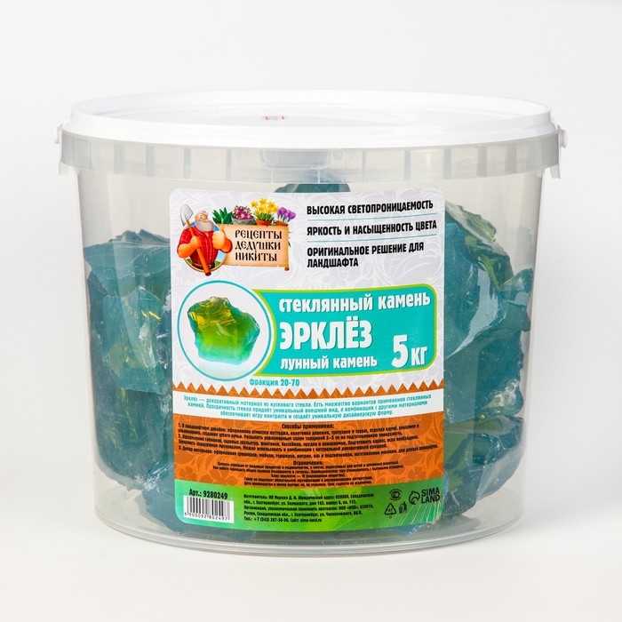 Стеклянный камень (эрклез) "Рецепты Дедушки Никиты", фр 20-70 мм, Лунный камень, 5 кг
