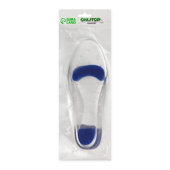 Стельки для обуви, с супинатором, универсальные, 39-40 р-р, 25,5 см, пара, цвет прозрачный/синий