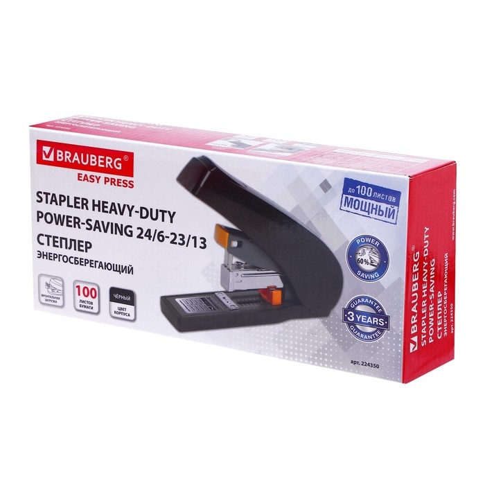 Степлер №24/6,23/13, до 100 листов, BRAUBERG Leistung, энергосберегающий