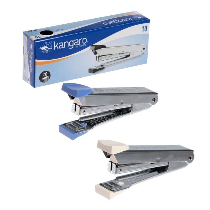 Степлер Kangaro №10, до 20 листов, металлический копус, встроенный антистеплер, 50 скоб, микс