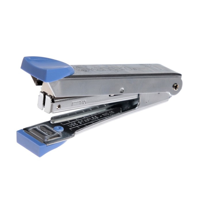 Скобосшиватель Kangaro № 10 изготовлен из металла. Пластиковый держатель обеспечивает комфортный степлинг.