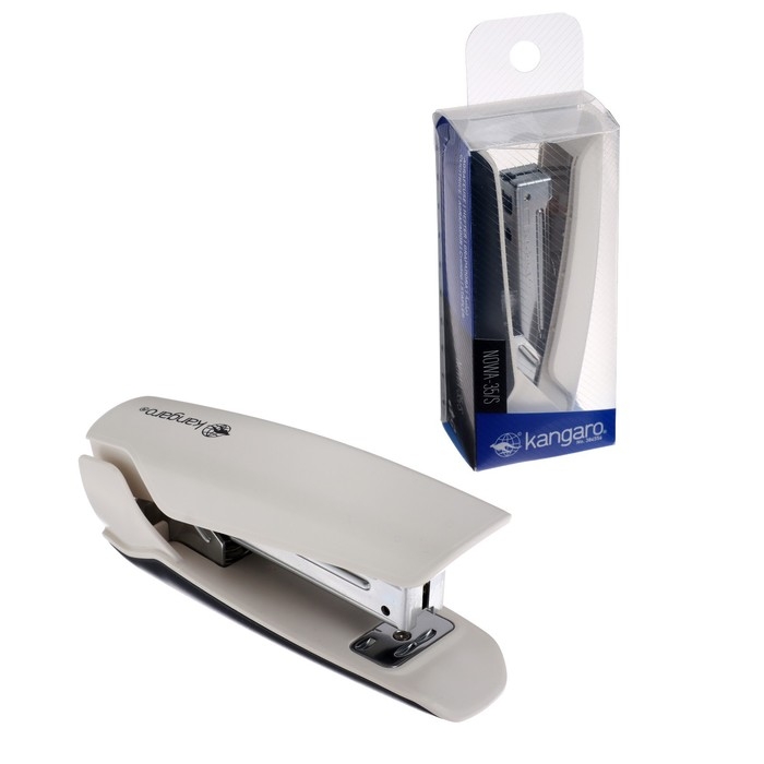 Степлер Kangaro Nowa-35 №24, до 25 листов, компактный, стальной механизм, встроенный антистеплер, бежевый