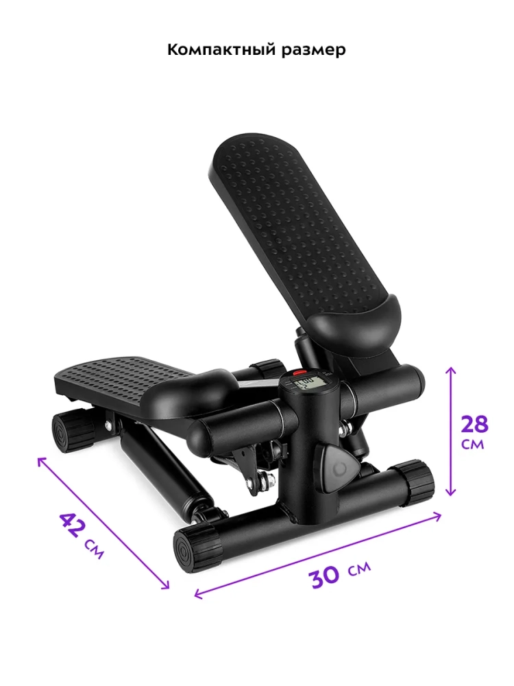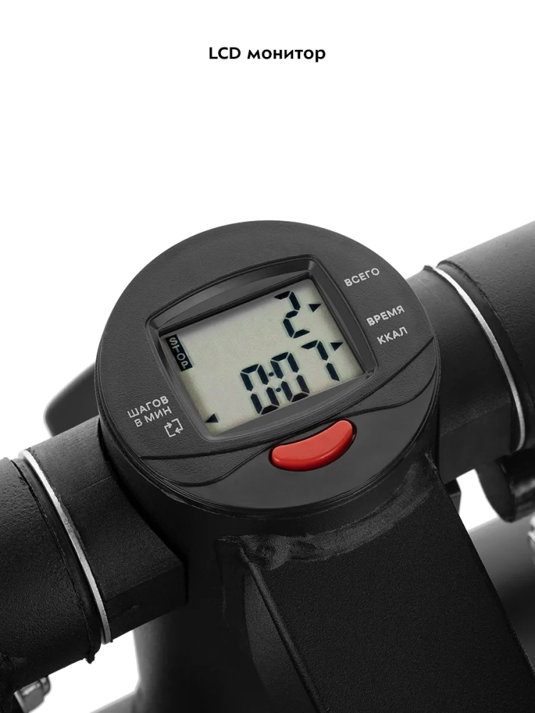 Степпер Kitfort КТ-6090 — кардиотернажер, имитирующий ходьбу и подъем по лестнице за счет переноса веса с ноги на ногу. Название тренажера произошло от английского слова «step», которое переводится как «шаг». Суть тренировки заключается в том, чтобы нажимать на педали — делать шаги. На корпусе есть ручка регулировки высоты педалей, чтобы плавно изменять нагрузку при необходимости. Чем больше высота педалей, тем больше нагрузка на мышцы во время тренировки. Заниматься на степпере очень просто, для тренировки на этом тренажере от вас не требуется особых навыков и специальной подготовки. Несмотря на простоту использования, регулярные тренировки дают видимый результат. Кардионагрузка повышает выносливость организма, улучшает координацию движений и работу вестибулярного аппарата, также при правильном питании способствует уменьшению объемов тела. Регулярные занятия на тренажере улучшают работу сердца, сердечно-сосудистой и дыхательной систем. За счет физической нагрузки прорабатываются связки стоп, голеней и коленей, мышцы бедер и ягодиц, межреберные и подвздошно-поясничные мышцы, брюшной пресс и мышцы кора в целом. Степпер KT-6090 оснащен системой нагрузки с гидроцилиндрами и педалями с нескользящими поверхностями. Гидравлическая система предполагает работу за счет механической нагрузки на педали — поочередное надавливание на педали приводит степпер в движение. Гидравлические поршни обеспечивают мягкий, упругий и равномерный ход педалей, благодаря чему во время занятий коленные суставы не подвержены ударным нагрузкам, как при обычной ходьбе. На дисплее монитора отображены параметры тренировки: длительность тренировки, количество нажатий на педали в минуту, суммарное количество нажатий на педали и количество сожженых калорий. Это позволит вам контролировать нагрузку во время тренировки и ее длительность согласно вашему желанию. Степпер Китфорт KT-6090 компактный, поэтому не занимает много места в квартире.