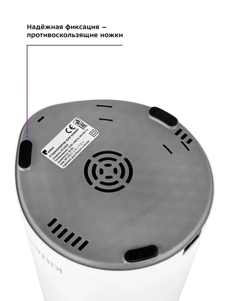 Стерилизатор Китфорт КТ-2055 имеет размеры обычной подставки для ножей, поэтому с легкостью поместится даже на самой маленькой кухне. Минималистичный дизайн устройства будет сочетаться практически с любым интерьером, не портя основную концепцию дизайна помещения.