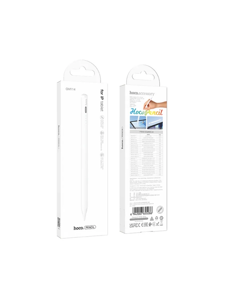 Стилус HOCO GM114 подходит для использования с планшетами iPad, выпущенными после 2018 года. Это делает его отличным выбором для пользователей, которые хотят улучшить свой опыт работы с планшетом, сделав его более точным и удобным.