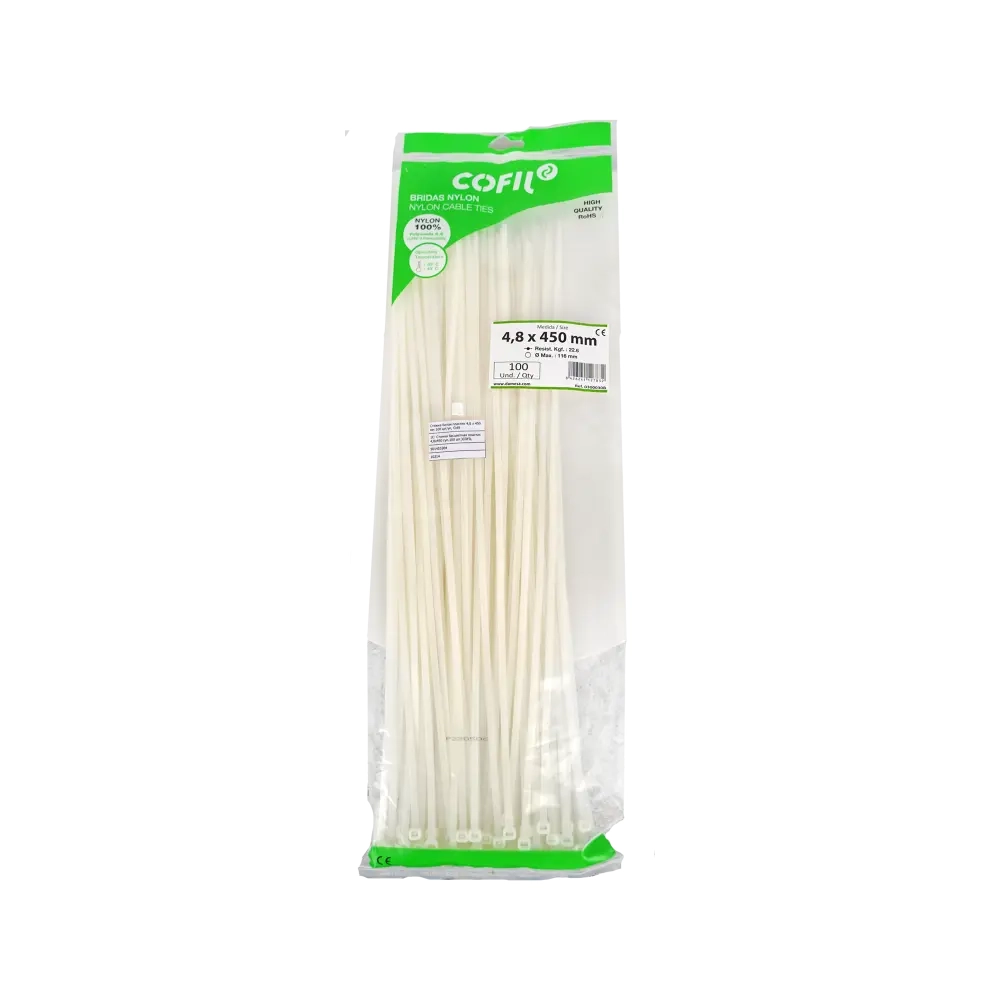 Стяжка белая пластик 4,8 х 450 мм 100 шт/уп, Cofil