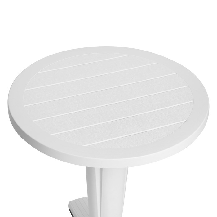 Компактный стол круглый белый Прованс идеально подходит для летних баров, кафе, частных домов, как для расположения внутри и снаружи помещений. Стол Прованс круглый 65см можно использовать для дружеских чаепитий на даче. Обращает на себя внимание и структурированная поверхность.