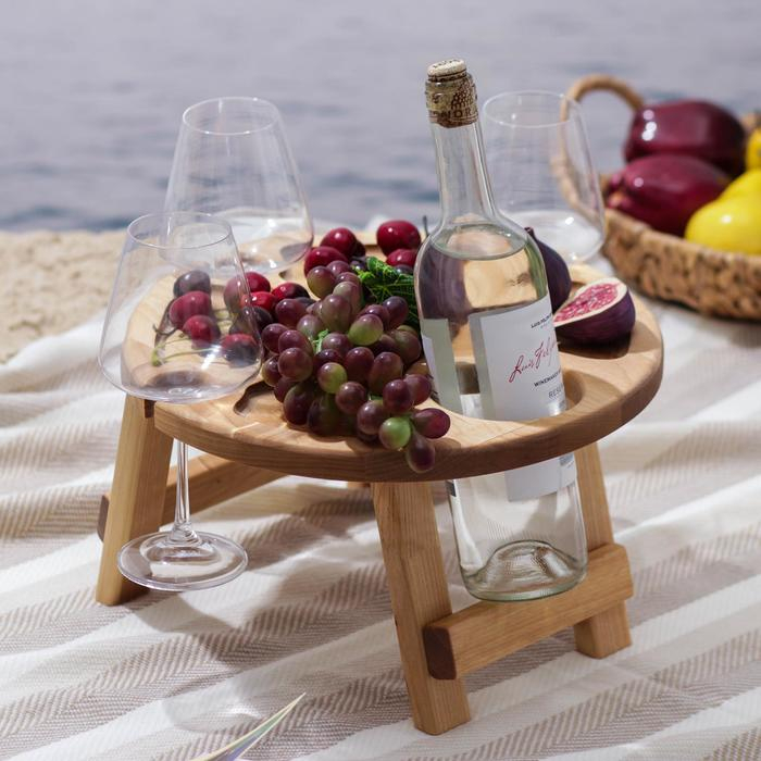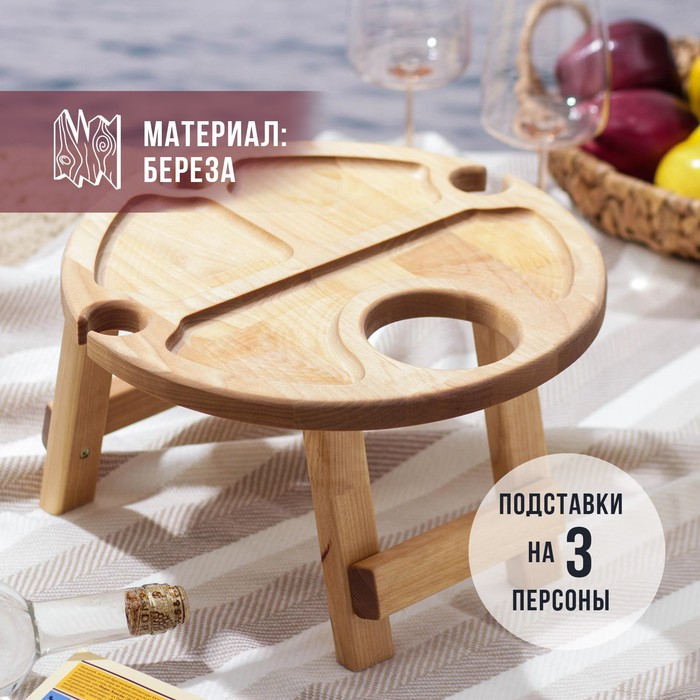 Столик - поднос для вина Adelica, с менажницей и складными ножками, на 2 персоны, d=32×1,8 см, берёза