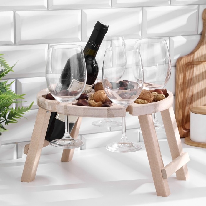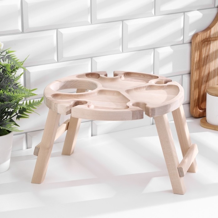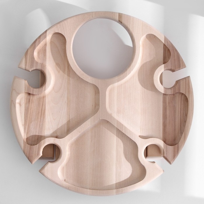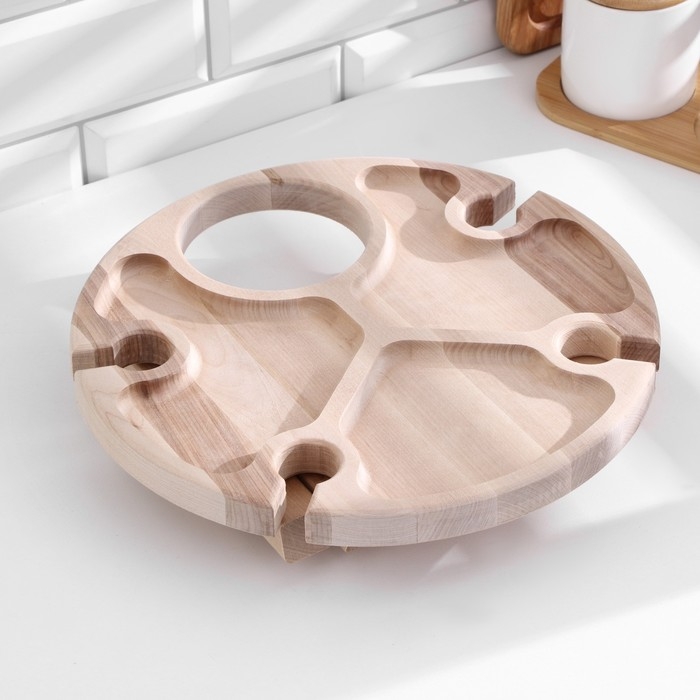 Столик - поднос с менажницей и складными ножками D=30x2,8 см, береза