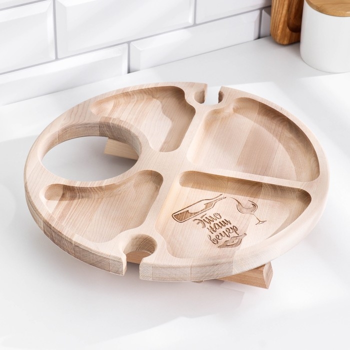 Столик - поднос с менажницей и складными ножками "Это наш вечер" D=30х2 см, береза